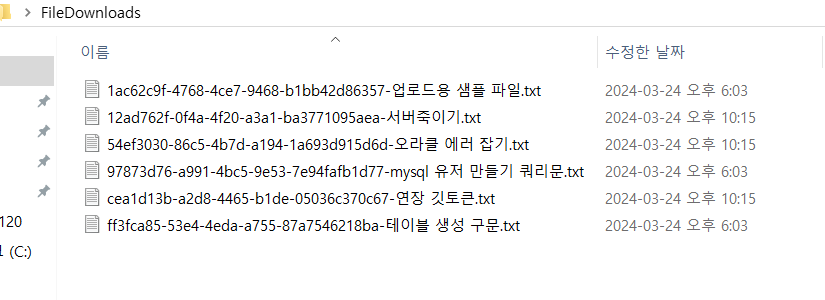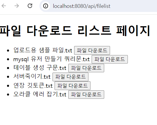 - IndexController.java (그냥 파일리스트 출력하고 다운로드 버튼 클릭 시 다운로드 되는지 확인하기 위해 생성)