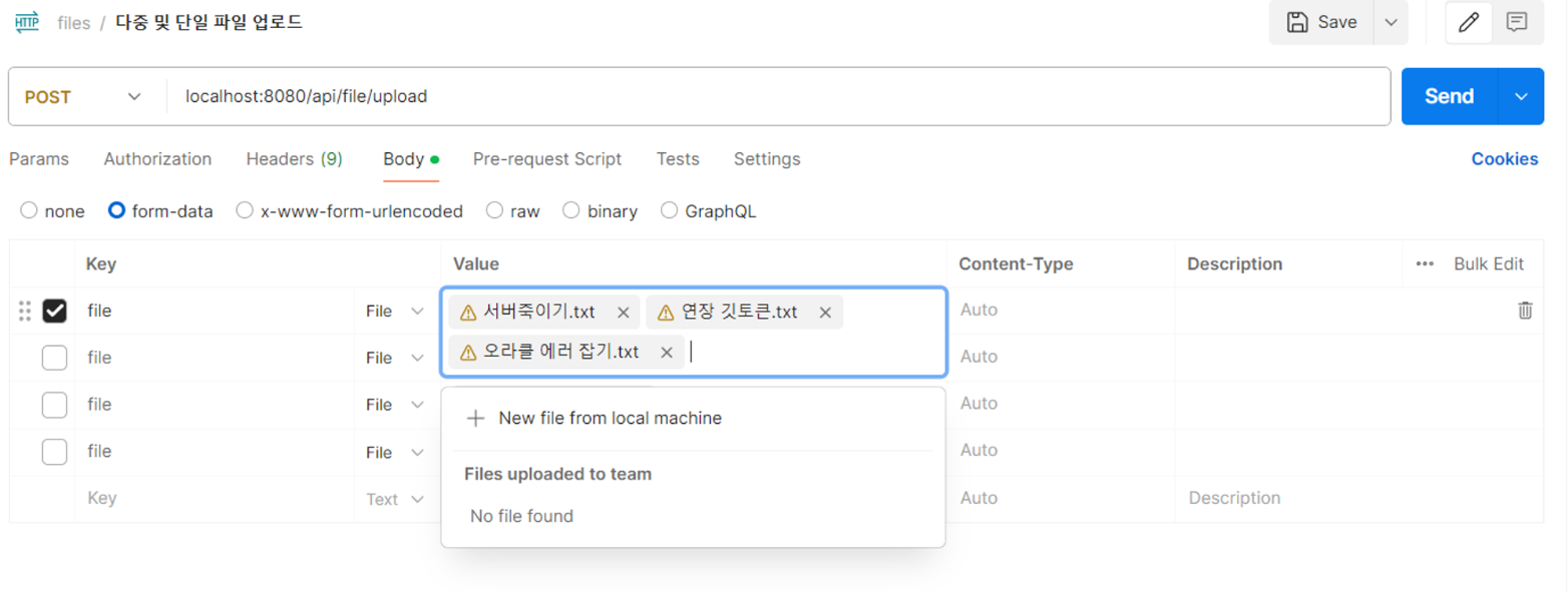 -- #1 postman 으로 파일 업로드