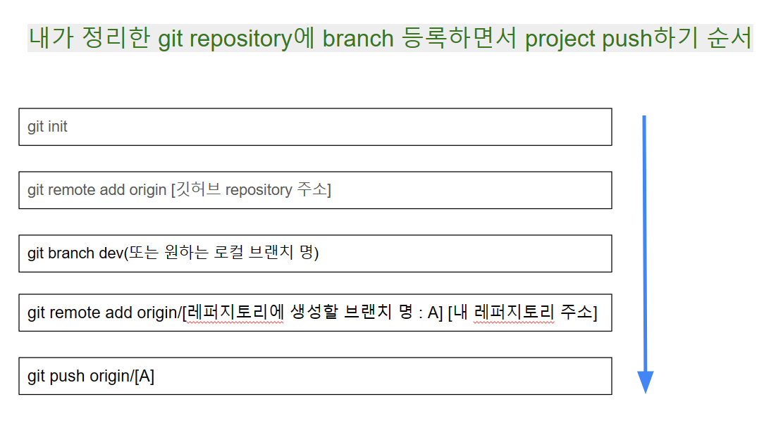 - git repository 생성하면 존재하는 default repository 인 main에 바로 push 하는 게 아니라