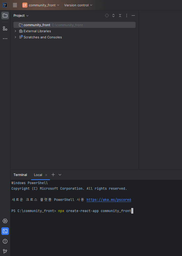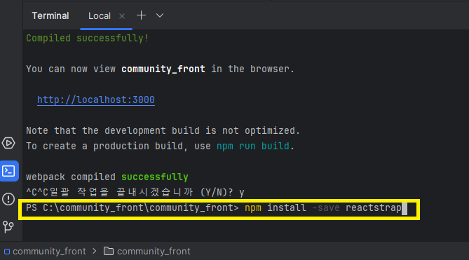 - 프론트 프로젝트 경로 : C:\comunity_front