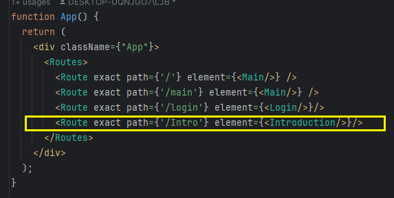 - 이렇게 새로 만든 컴포넌트틀 App.js 에 라우터 경로로 추가
