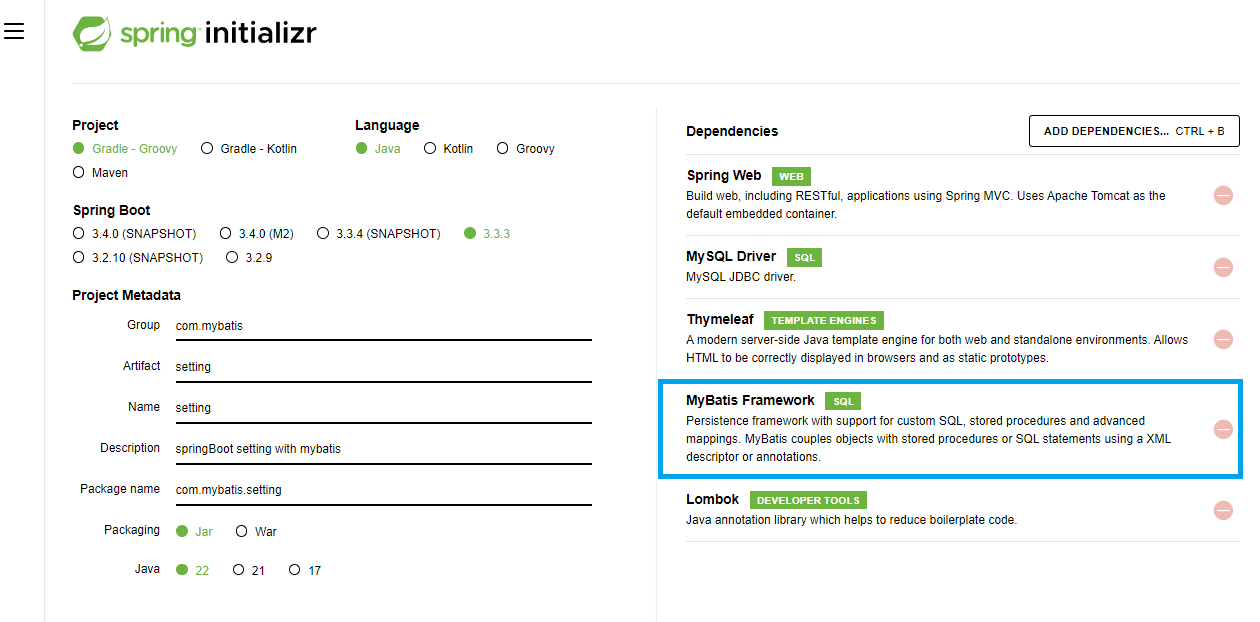 implementation 'org.mybatis.spring.boot:mybatis-spring-boot-starter:3.0.3'