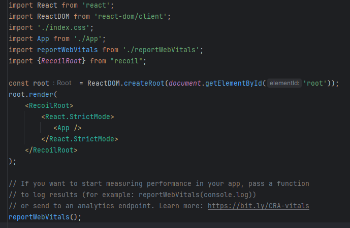 #3 index.js 에 root.render 부분 <RecoilRoot></RecoilRoot> 로 감싸주기
