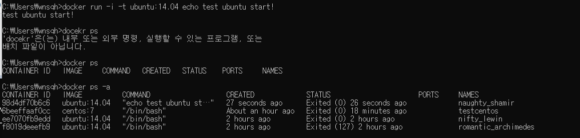 // docker run -i -t ubuntu:14.04 [출력하고 싶은 문구]