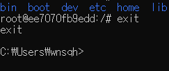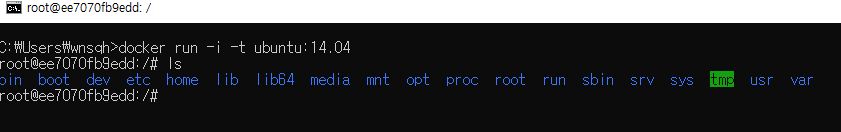 우분투 이미지 설치가 완료되면 다시 한 번 같은 명령어를 실행하여 컨테이너 내부로 들어가자