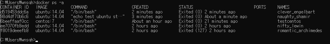 docker rm $(docker ps -a -q) // 모든 컨테이너 삭제