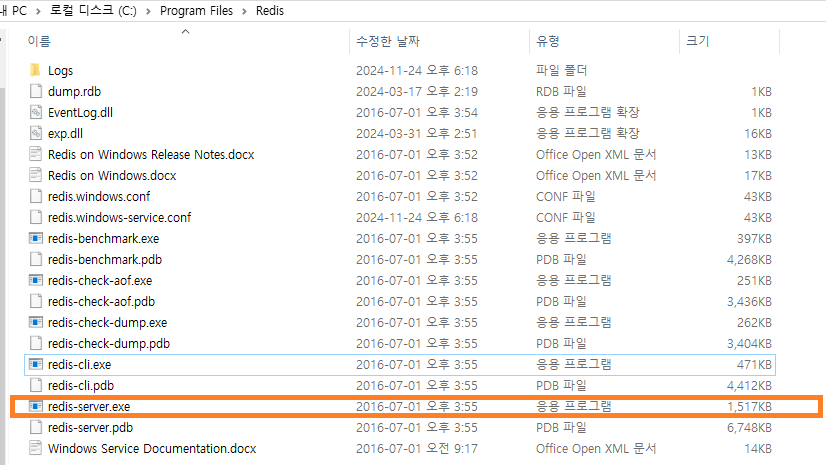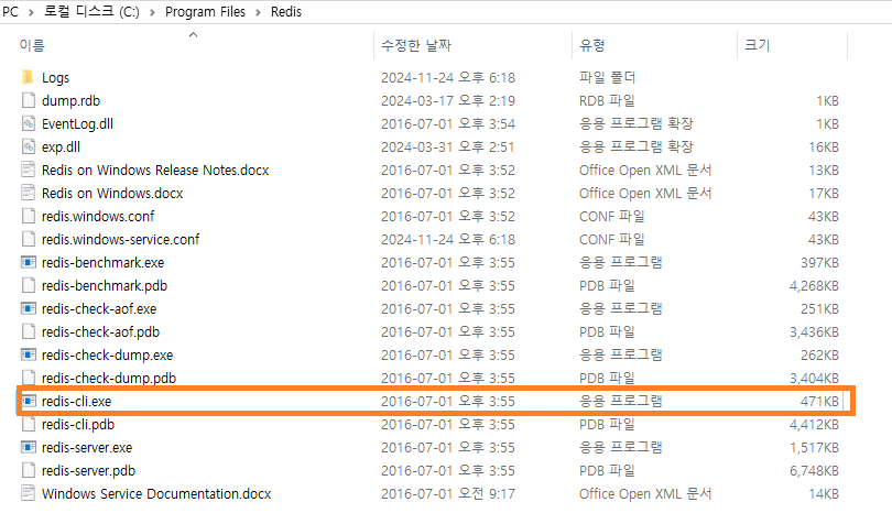 - C:\Program Files\Redis 이동