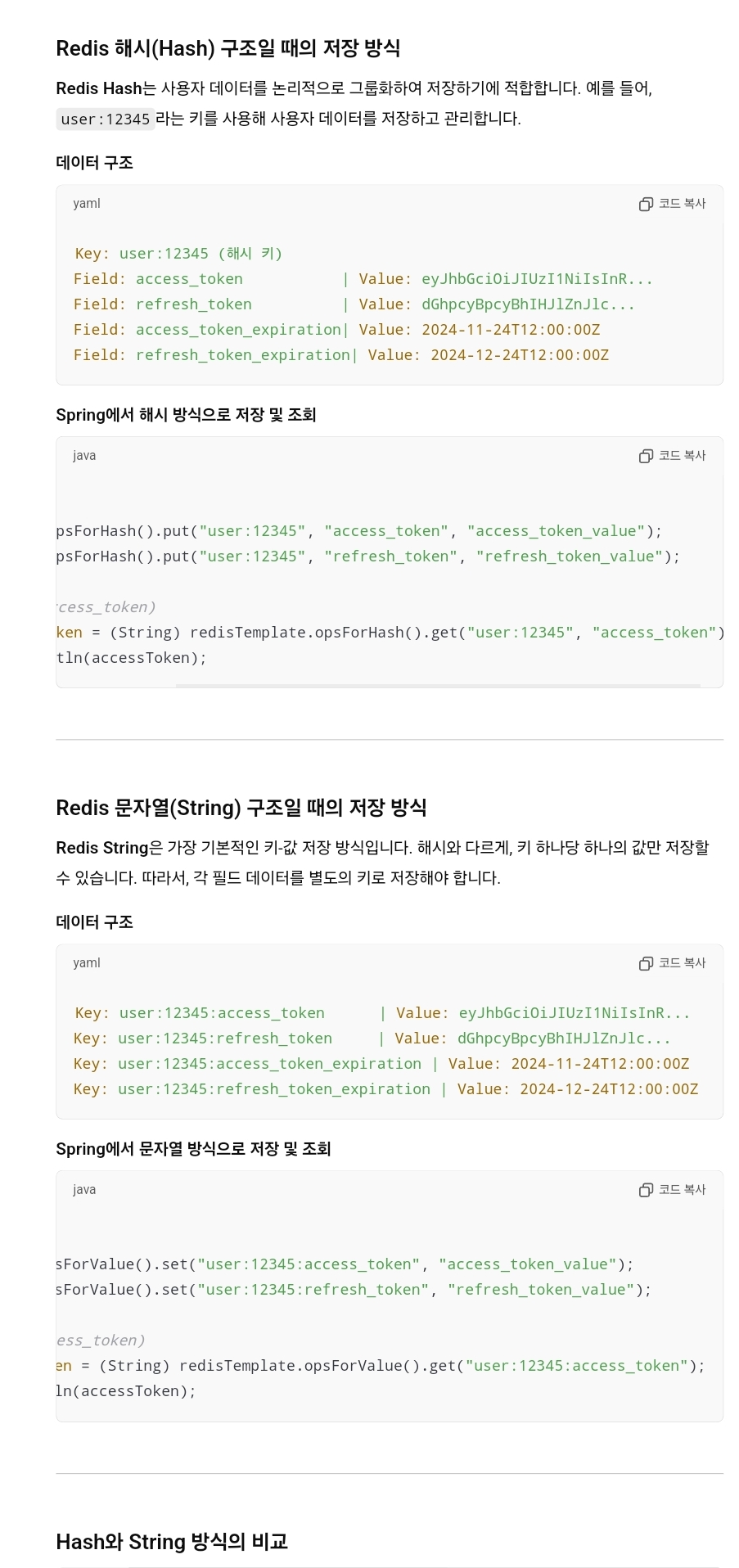 * ※ 주석처리한 opsForValue는 데이터가 객체가 아닌 string 타입으로 저장될 때 사용하기 좋은 메소드이다.