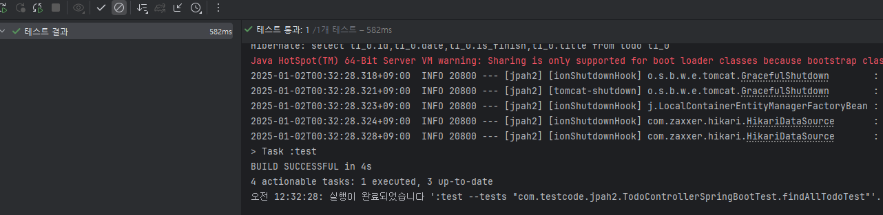 [#2 통합테스트 : TodoControllerSpringBootTest.java + 결과]