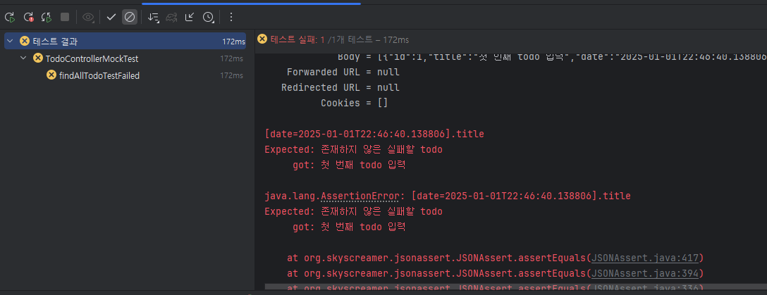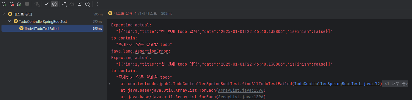 String expected = "존재하지 않은 실패할 todo"; // 예상 결과 (이미 DB 에 저장된 값)
