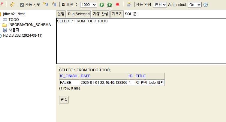 String expected = "첫 번째 todo 입력"; // 예상 결과 (이미 DB 에 저장된 값)